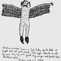 Pani Greenwood opisała bestię jako dużą jak człowiek, koloru srebrnoszarego, z szerokimi wargami, skośnymi czerwonymi oczami oraz dużymi krabopodobnymi szponami. Inne relacje mówiły o upierzeniu, jednak opis koloru był zawsze taki sam. Najnowsza relacja pochodzi z roku 1995, kiedy to stwór pojawił się ponownie przy wieży kościoła w Mownan. Świadkowie, pragnący pozostać anonimowymi, tak jak pewna młoda kobieta, opisywali stworzenie jako "wizję z piekła".