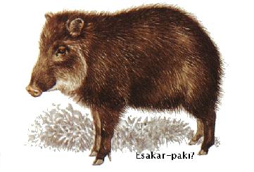Lokalny speleolog z plemienia Shuar - Marcelo Churuwia twierdził, że był ścigany na pograniczu ekwadorsko-peruwiańskim przez stadko południowoamerykańskich świniopodobnych ssaków - esakar-paki. Musiał uciekać na drzewo. Churuwia opowiadał, że zwierzęta te miały czerwono-brązową sierść. Żadne ze znanych pekari nie charakteryzują się taką okrywą włosową. Trzech myśliwych, którzy udzielili wywiadu kryptozoologowi Angelowi Forésowi, porównywali rude esakar-paki do pekari białobrodych. Esakar-paki są najbardziej podobne do Tayassu pecari, które również mają opinię agresywnych. To może być impuls dla nas. Zwierzęta te zamieszkują szczególnie Park Narodowy Sangay i region Trans-Cutucú.