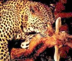 Krążą wieści, że ten, kto schwyta Sandewana i zaprowadzi go do króla lub wodza, zdobędzie wielkie bogactwa (nie wiadomo jednak, czy to nie król nagradza tymi bogactwami). Sandewan pozostawia krwawe ślady. Ten trop, który widziałam, był niewątpliwie krwawy: duże plamy o średnicy od pięciu do dziesięciu centymetrów. Natychmiast pomyślałam o biegnącym zwierzęciu pozostawiającym ślady krwi [mógł to być np. lampart ciągnący swoją ofiarę, taki jak na zdjęciu powyżej]. Nie wyglądało to na ślady rannego zwierzęcia, poruszającego się z trudem i znaczącego swoją drogę rozmazaną krwią. Nie oznacza to jednak, że sandewany nie pozostawiają tego typu śladów. tego nie udalo mi się ustalić.