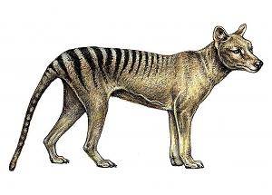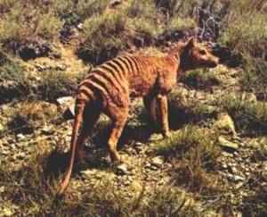 Ale ze wszystkich wymarłych zwierząt największe szansę przetrwania miał tasmański tygrys, zwany też tasmańskim wilkiem, dziki torbacz-drapieżnik wysoki na blisko dwa metry, obdarzony masywnymi szczękami, o pasiastym zadzie, dzięki któremu uzyskał miano tygrysa. Swego czasu występował obficie w całej Australii. Uważa się, że uległ wyniszczeniu w interiorze około tysiąca lat p.n.e. wskutek sprowadzenia na kontynent psów dingo . O wiele dłużej gatunek ten przetrwał na Tasmanii, lecz wcześni brytyjscy osadnicy polowali nań bez litości, sądząc iż wyrządza szkody wśród stad owiec. Dlatego już w 1910 roku rzadko można było spotkać wilka tasmańskiego na wolności. Ostatni przedstawiciel tego gatunku został schwytany w Florentine Valley w 1933 roku i trzy lata póĽniej zdechł w zoo w Hobart. W 1936 roku wpisano go na listę gatunków przypuszczalnie wymarłych.